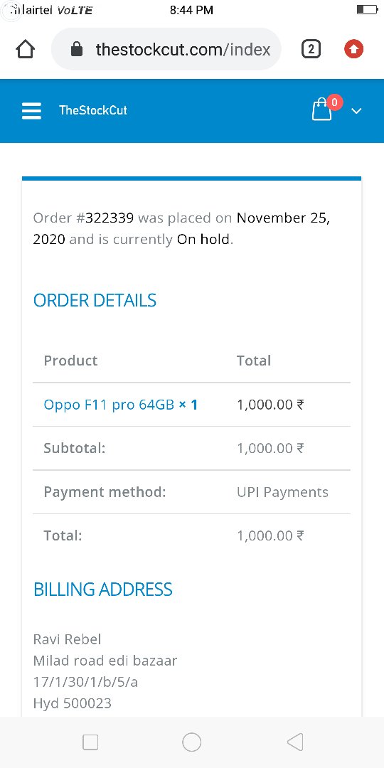 Good morning sir I subash Kumar Sarki would like State you that sir I got one side to get a laptops in cheapest price so I loged in and order one lap top for which I paid 4299.08 Rupees through my S B I card and order I'd is 386656269 sir I am fully surprised the side is clearly given that https://www.upgrade your mobile .in and also costmare care no is available there which is 9811806376 Sir I tried to contact this no so many times but all goes in vain sir I request you please find out if its fake please take a immediate action on this fake company and try to refund my money thanks sir your faithfully subash Kumar Sarki