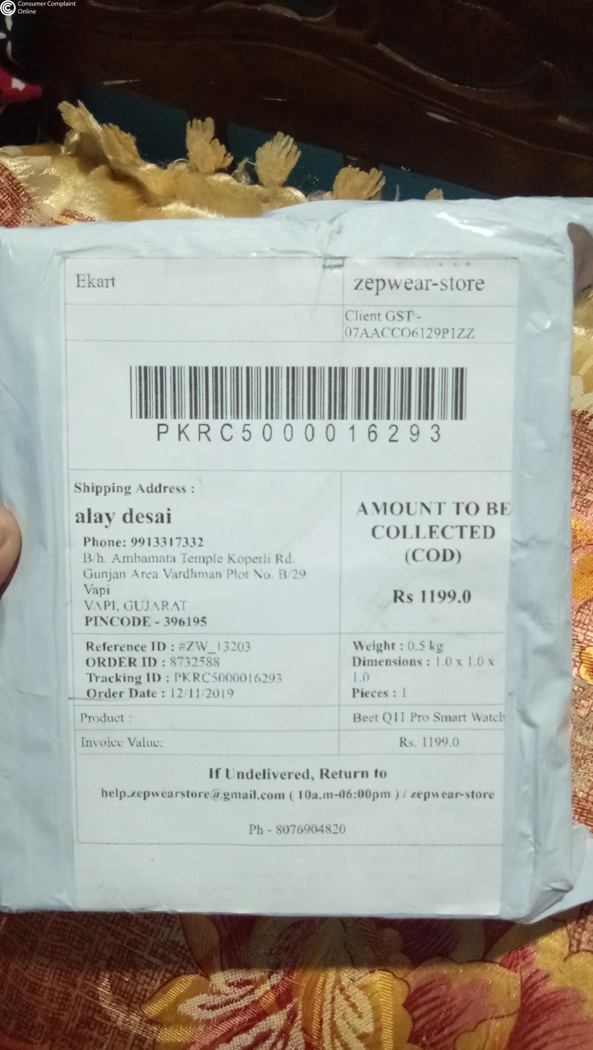 #1733, order I'd - 8597452 tracking id1332919362602] ordered BeetQ11Pro smart watch worth 990/- with cash on delivery. But i received 15december019 to poor quality shoyo