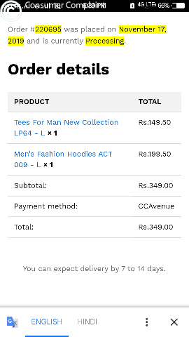 I am order a t-shirt MK02 order id is #262173 order date 19 November 2019 today is 10th December but my product is not delivered i am sent 3 - 4 main but no reply please reply me & product delivered as soon as possible.