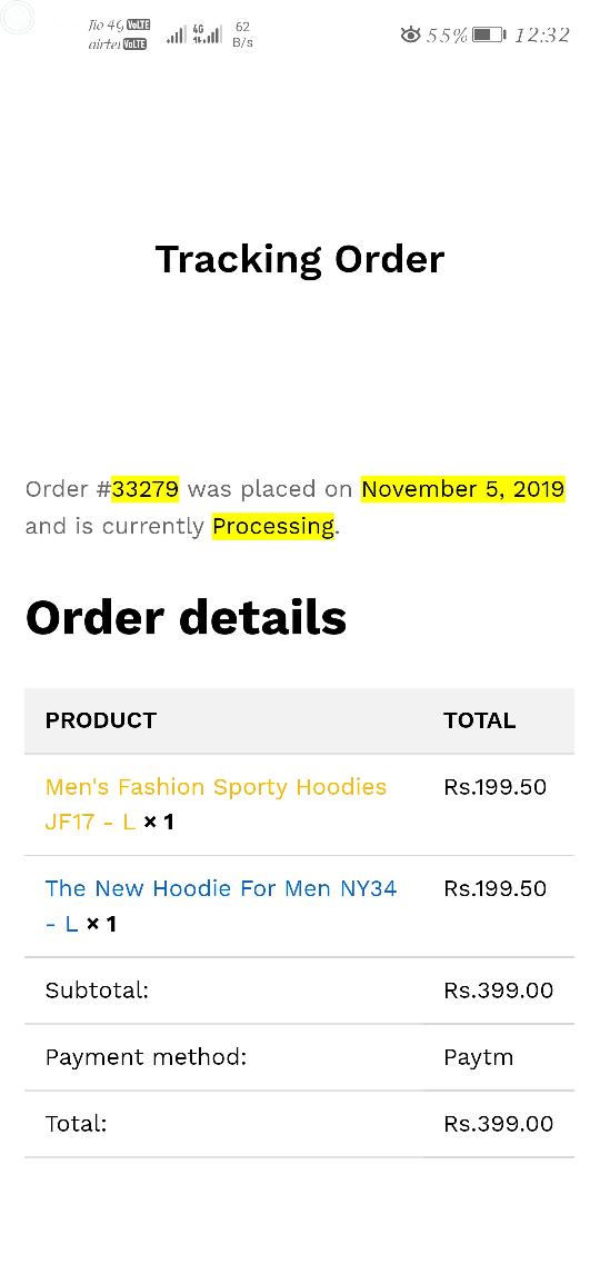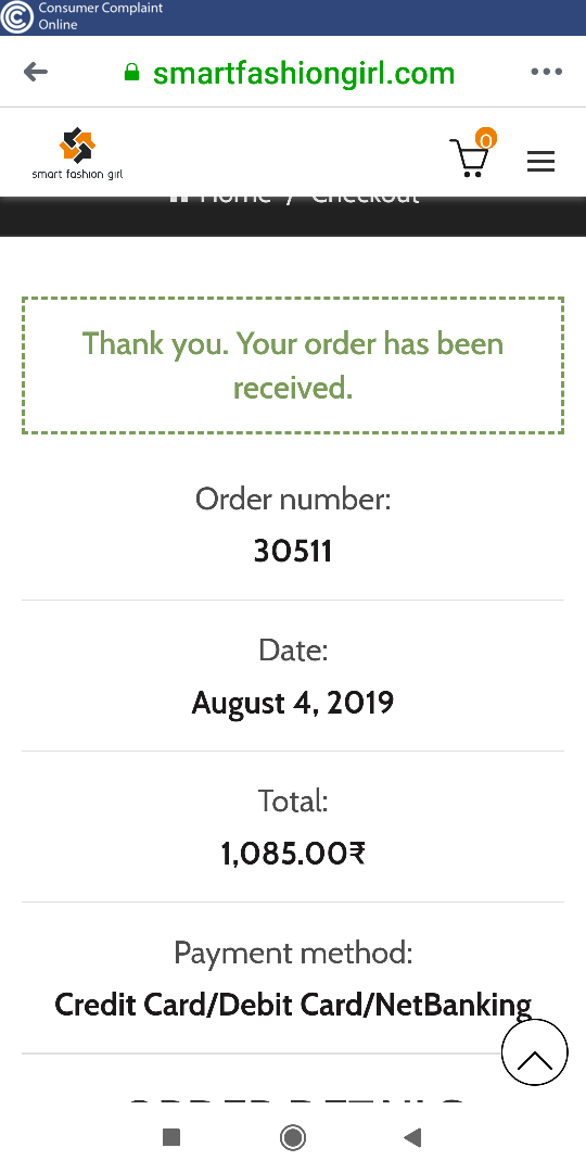 I have ordered a dress on October 8, 2019. Paid money Rs 570/= already.