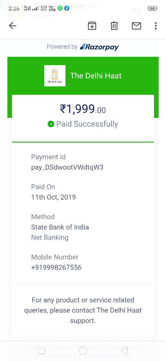 I ordered a woman halmet worth RS 1990 I paid for that online and not received any information or details they not giving any information of my mail