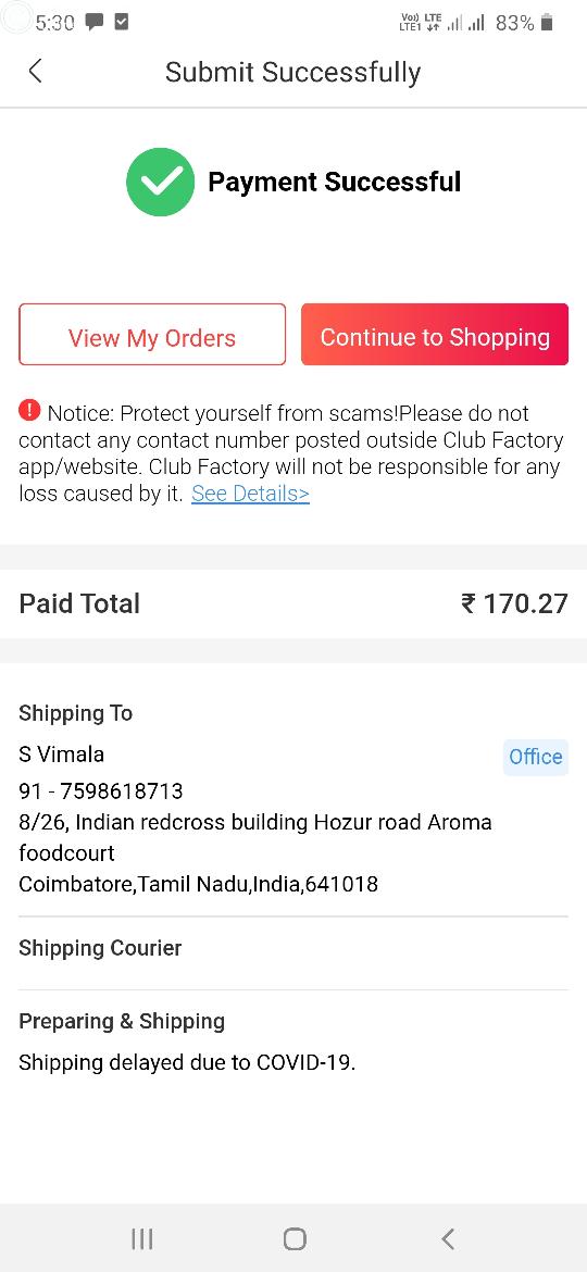 [Club Factory] Your package of order (SO283631250) has been delivered successfully. Please rate our service through this link: https://forms.gle/Xr2QKjKfWuuf58Qg6 . If undelivered, please report it to us through this link: https://app.fromfactory.club/u/u/6Bx0n. Thanks for your support. [Club Factory] Your package of order (SO282519101) has been delivered successfully. Please rate our service through link: https://forms.gle/RxutZNTc3W6Vdg5Q9 . If undelivered, please report it to us through link: https://app.fromfactory.club/u/u/6BEhw. Thanks for your support.
