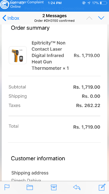 I have placed order for IR thermometer on 13th march and i had paid online at the same time. But till now after so many mails, neither the product is delivered nor my money refund is made. Not getting any answer from them. My order ID is : #DH3150 . Please help me to get my money refund from these cheaters.
