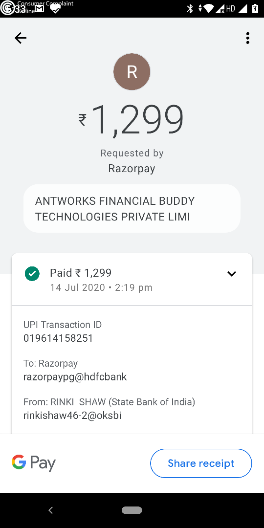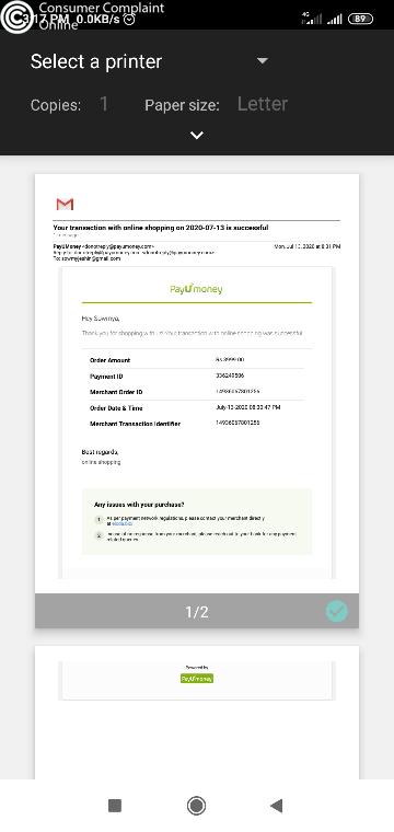 My order Himalaya baby massage oil 500 ml and pay googal pay 515 rupees but next day auto select 100ml but my money not show so please solve my problem