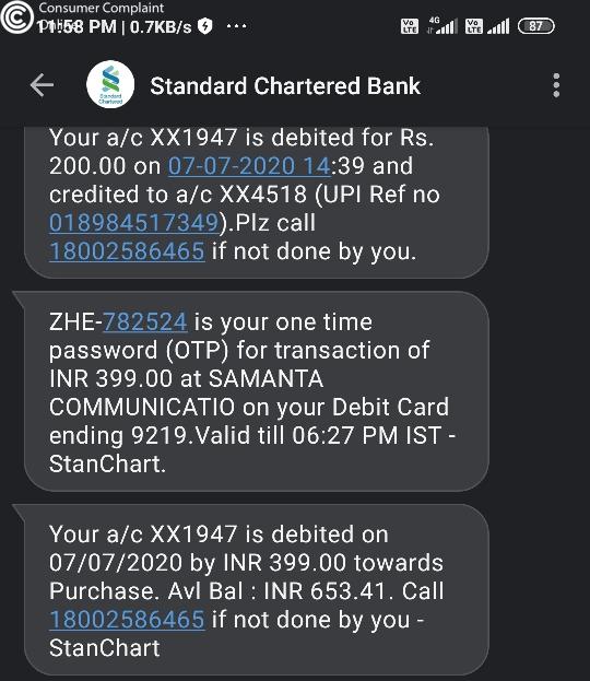 Please help me, i am attaching the screenshot shot of sms & bank statement for the proof of deduction and screenshot of messages received from complaint board.