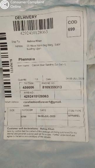 ,I order a yellow full suit at 699rs from phennava.com and paid cash on delivery when I open the order I found a worst local market single kurti i sending mail for return three time but no reply from phennava. Com its fraud with me