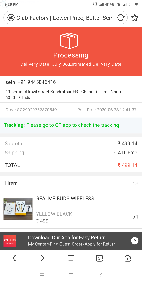 Thirdly- I compliant every day to club factory by SMS but they were not any response.