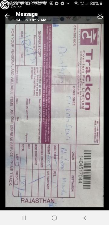 I will send courier 13 th Jun, knl to hyd till date that courier not delivered, service call in response,nobody cares