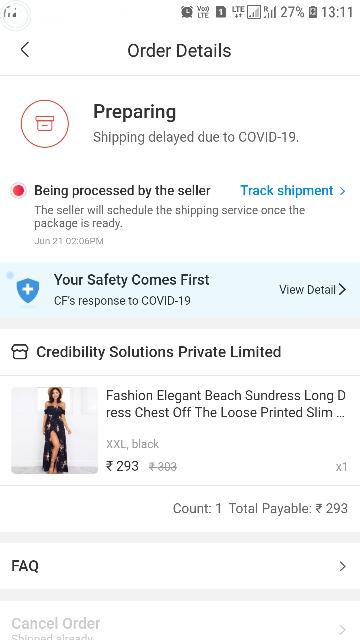 I order a product on clubfactory.com app on 20 june 2020 but it is not deliver or showing any shipping movement until the order is conform by the seller.I call customer care but he argued with me .He told me give me your account number or ATM number to transferring money and say to download different app to sharing the details.I told him that I pay the amount by PAYTM UPI then you have to refund the amount in PAYTM UPI or your company wallet. But he again argue with me.