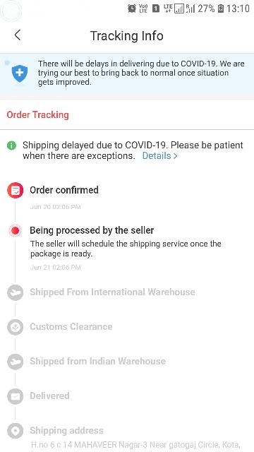 I was order some items on date 13/6/2020 and now today is 26/6/2020 and till date not delivered