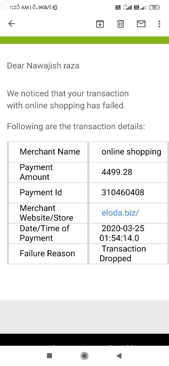 14/04/2020 order speria k5 and paid rs 4499/- but order not place and site not open till now how refund my money