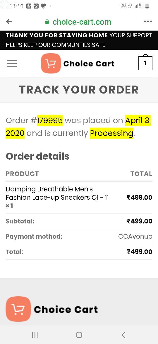CONFIRMED: Your Order has been successfully placed with order id 7157906998. Due to Covid 19 Pandemic there will be slight delay in dispatching orders. Thank you for shopping.