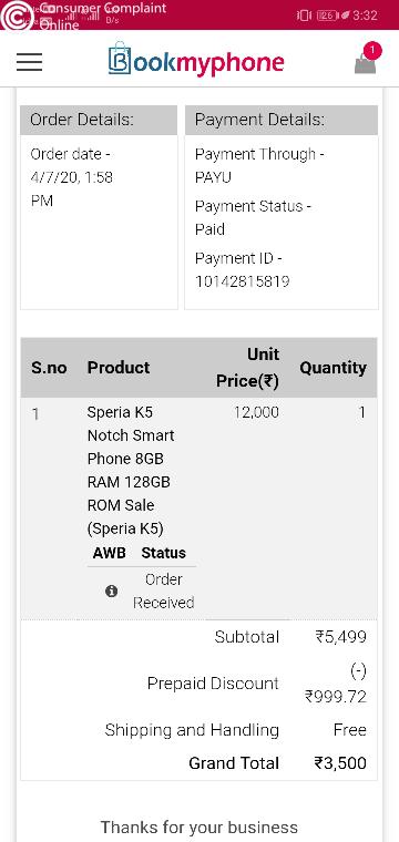 I am booked Speria K5 Notch smart Phone. Using book my phone. but still now not received so pls refund my amount. Order Amount Rs 4499.28 Payment Order Date 15-04-2020 ...
