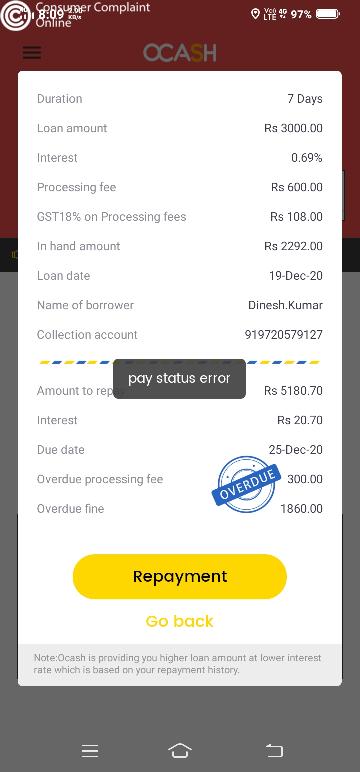 Cash been se15000ka loan liya tha jiska repayment kar diya per update nahi hua technical prablm btaye bole ho jayega badme bolte h ki abhi3000baki h jab kimai15000Ka15din me19221payment kiya mere account se paisa kat gya per update nahi hua mujhe bahut harassment kiye abhi cibil Bhi effect kar diye h