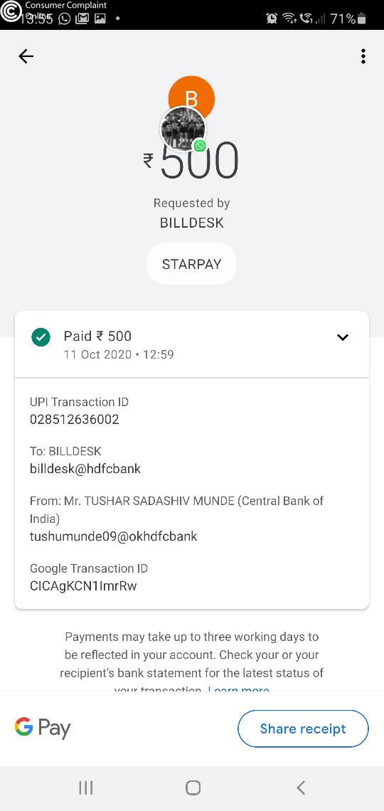 I was done upi to betway sports but it has been transfer to bill desk. I have not heard about bill desk so i need my amount back to my account.
