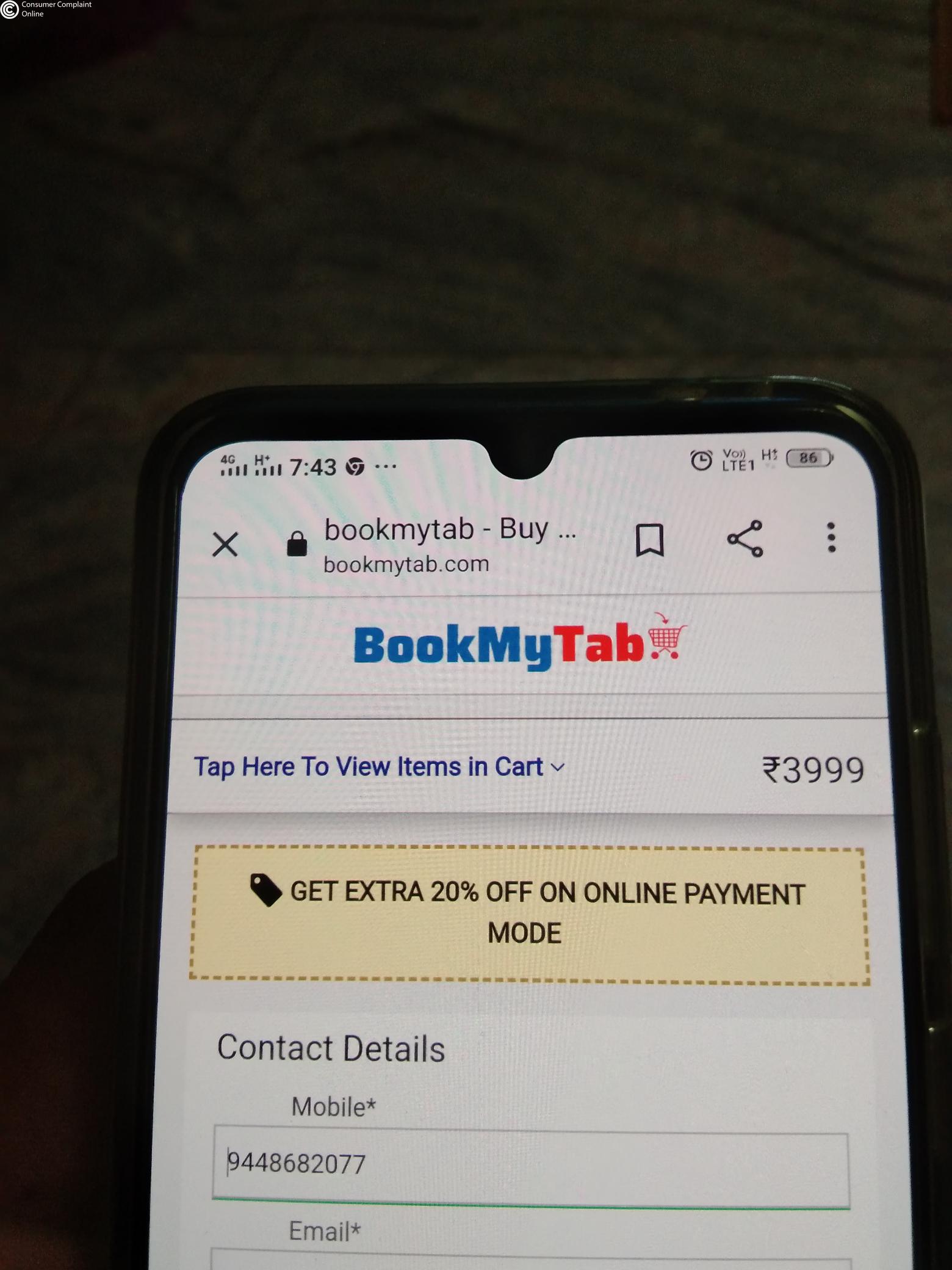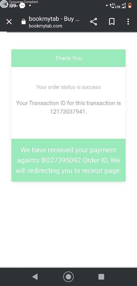 I have ordered a tablet worth Rs. 3999/- on 08/08/2020 through the website bookmytab.After payment I receive a message given as,