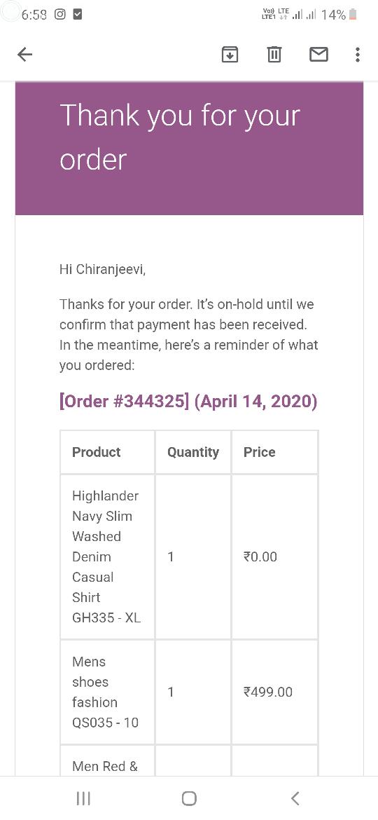 I have ordered 1 shirt 1 t-shirt and 1 jins and payment is successfully made on 17th April. Till date no response or update received. And now site is not working leaving msg " check back soon" . my order number 373800 and many time inform by mail and it's care no is also fake and froud . it all fake and I have lost the paid amount?