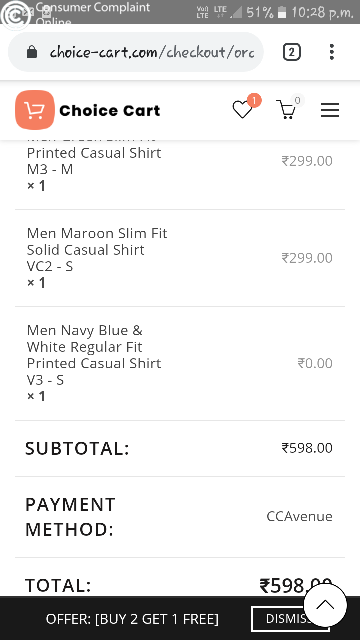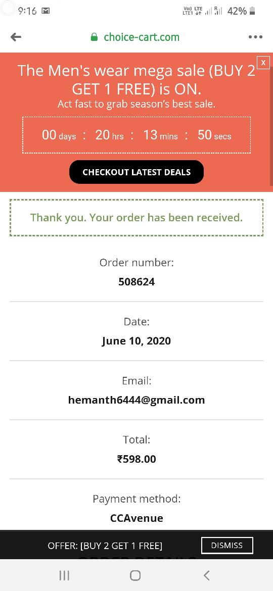 I was buy 2 shirts in choice cart.com but still there is no response from site and I have lost money through netbanking