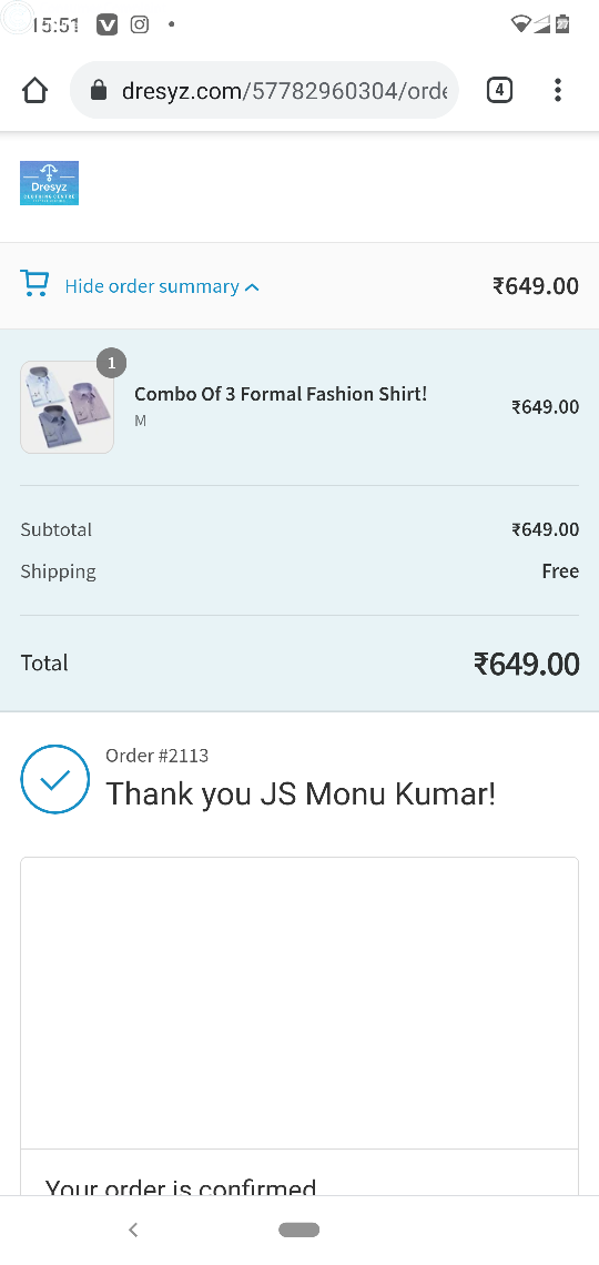 Actually we give ordered 3 formal shirts combo But I have received just 2pack another oldest cloth Please send me my refund
