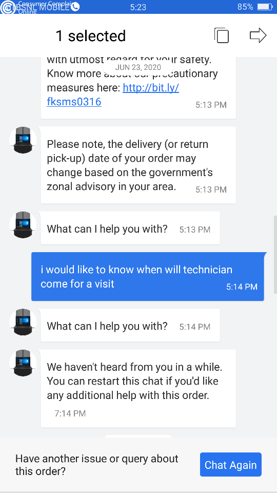 The technician has visited more than 20 times at my house, they come and check the mobile and always sad that again registered a complaint, so I did according to that but my problem is still unchanged.