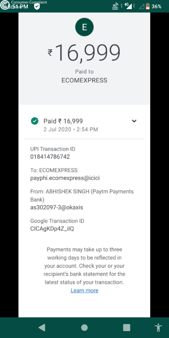 I had paid full amount on 9 aug itself.