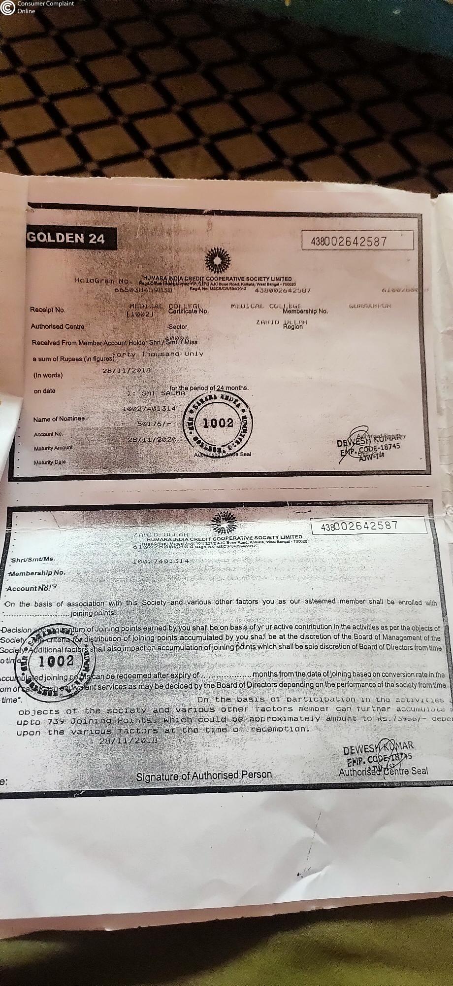 I had deposited a sum of money to HUMARA INDIA CREDIT COOPERATIVE SOCIETY LIMITED ON 13/10/2018. The maturity date was due on 13/10/2020. I have visited their office several times, contact person Mr. Ravi Shankar, Manager at their office address Mangal Jyoti 101, 227/2 AJC Bose Road, Kolkata, West Bengal - 700020. This person has been causing harassment for me. Every time I have visited him he has been pushing the date for withdrawal. For the last 8 months his phone (Mob No - 9875499177) has been unreachable and the office is closed for customer enquiry. Thus I am lodging this complaint for strict and immediate action against this company.