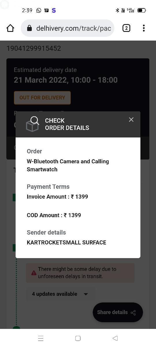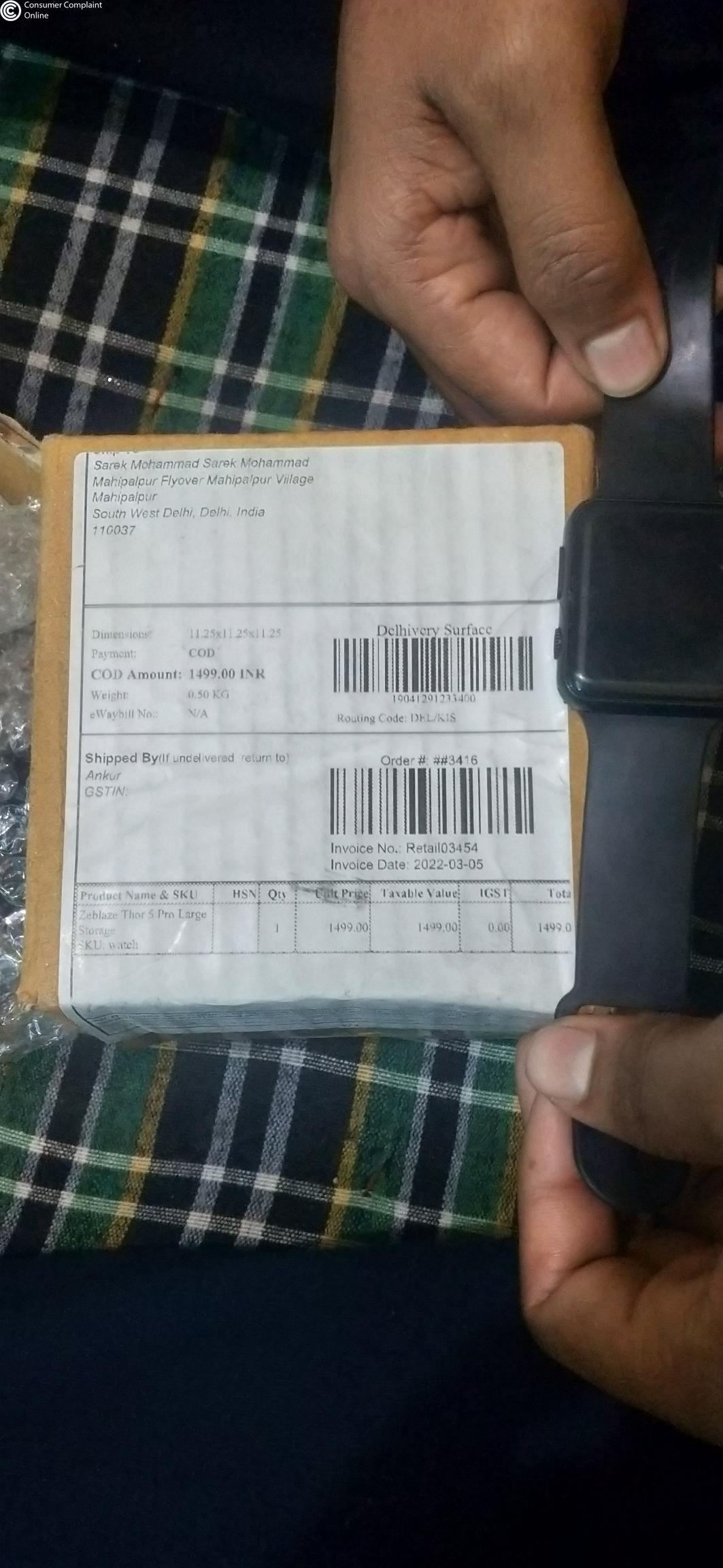 I had ordered a smart watch from oviya textile through facebook. Instead of a smart watch I have received biscuits packets. I would like to lodge a complaint. I observed that there is no From address on packaging. please help me out.