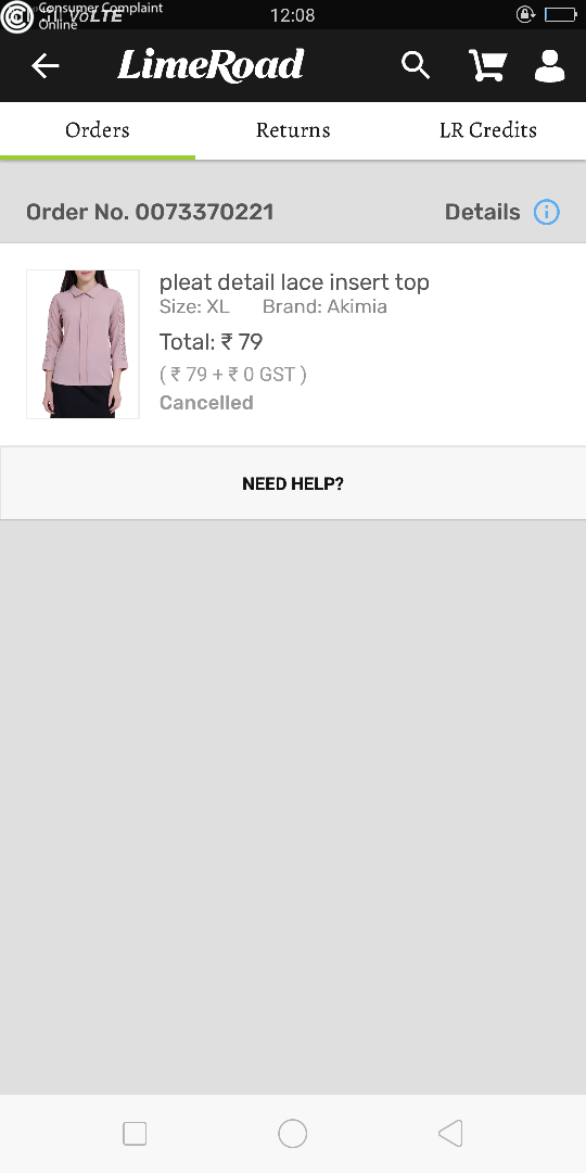 08 Aug 20 My order cancellation in lime road company's my order no is 0073268711iam mistake to ordetprefer this item please cancellation this order deep purple saree with blouse and the brand is Rekhamaniar company the order choose on 09/08/2020