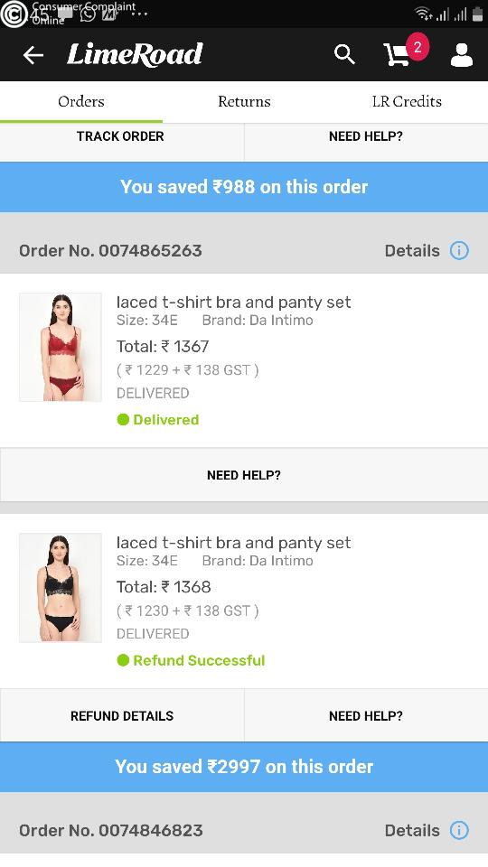 And since the quality was not good he had returned the product . But even after 10 days I have not received my refund and also on their app they have deleted the Order details so that I don't get a chance to complaint abt them . I have all the screenshots of delivery message .