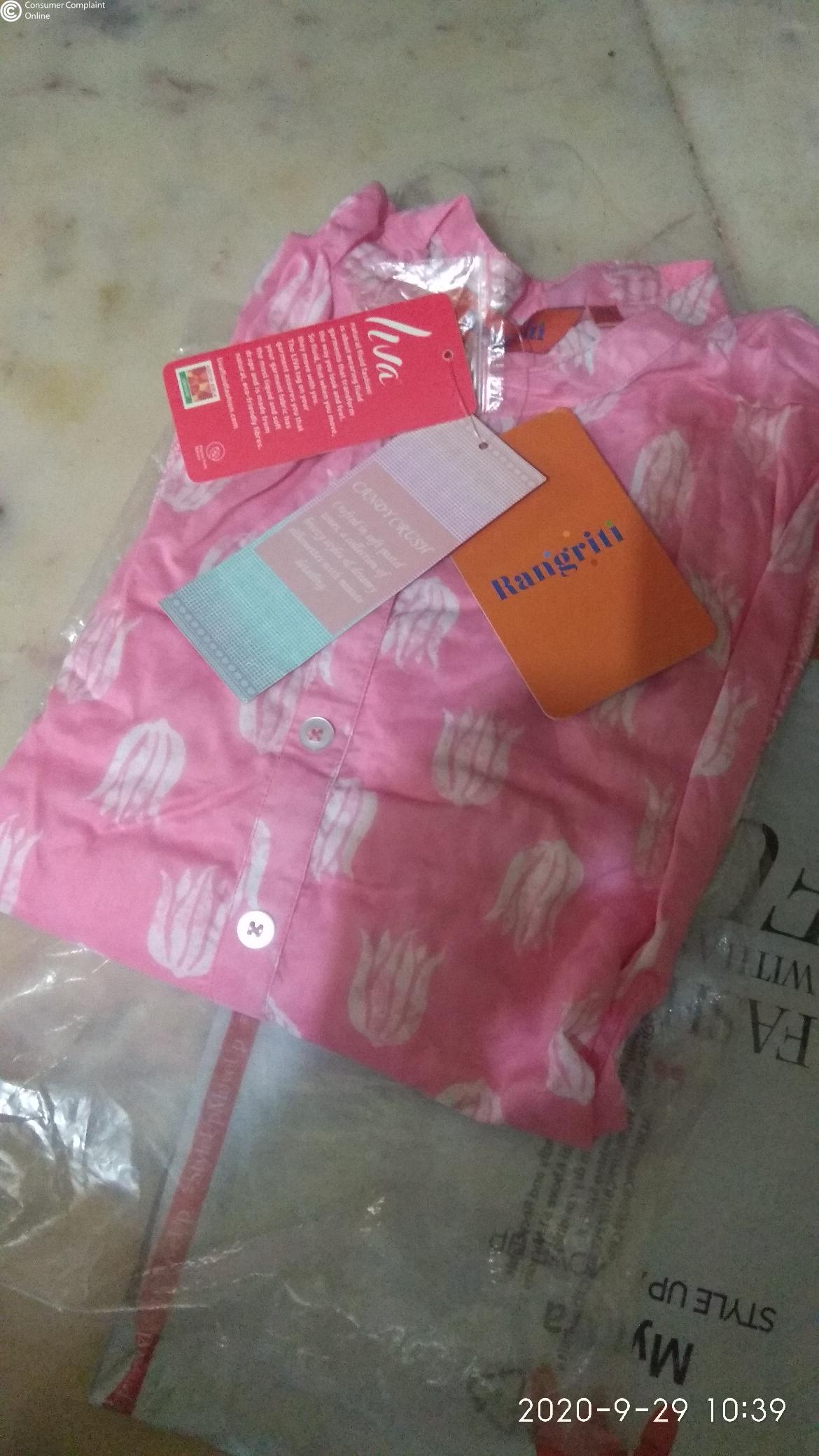 I ordered a Rangriti Pink and white kurti but i got an used ,smelly and smaller size kurti. I placed an order for exchange but when the delivery exicutive came he doesn't exchange that product he said that when customer service approve that product then he will exchange it... 5th time i complaint in Myntra but they didn't gave me the product every time they say that we registered ur complaint... Five times they registered my complaint but didn't resolved my issue. Please do something.