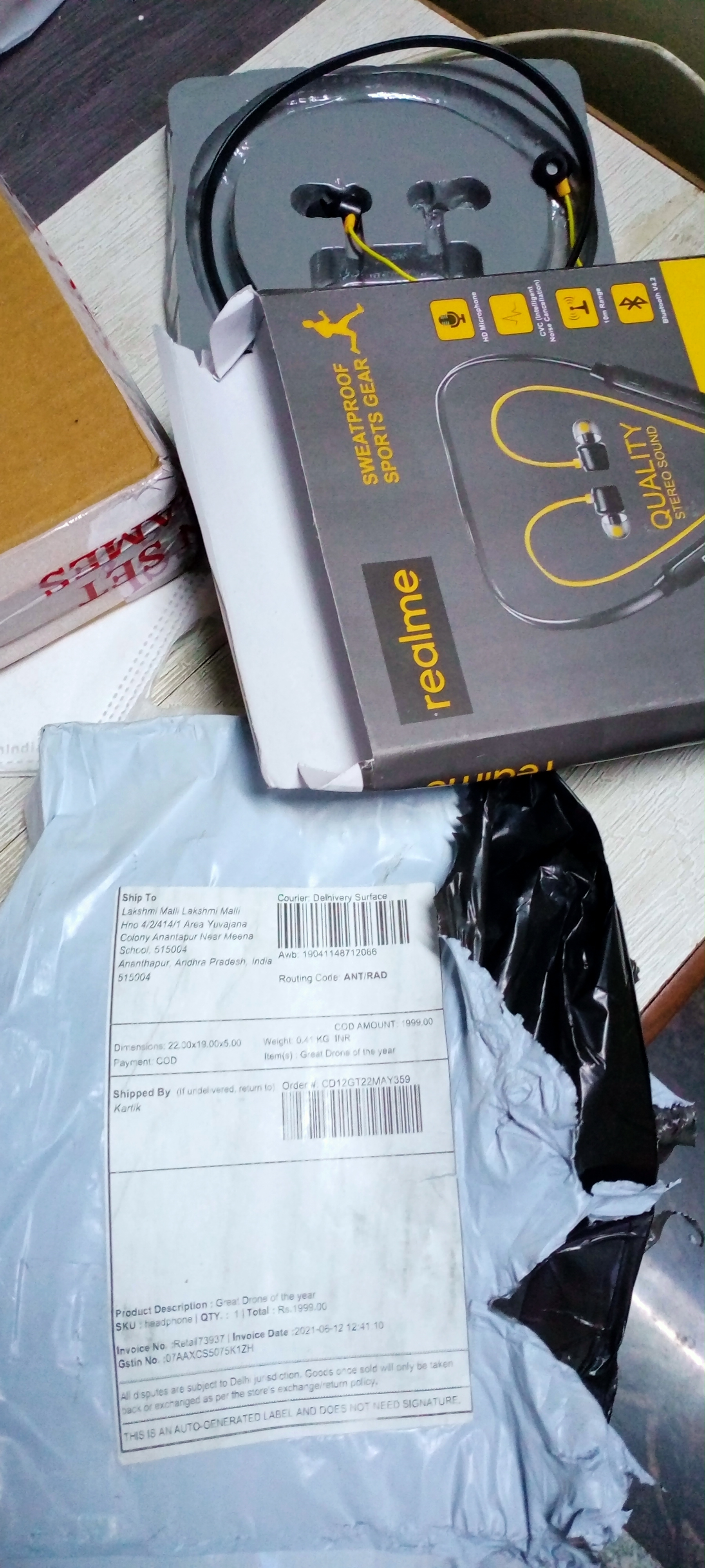 I have oder sony blutooth headphone combo pack,but company send me wrong product,which product is damage and another brand,I order on 22-6-2021 and recive 26-6-2021,I paid Rs 1700,order no-HG13353,item-Greyish combo,Awb-19041153530984,shipped by,JAGDAMBA,