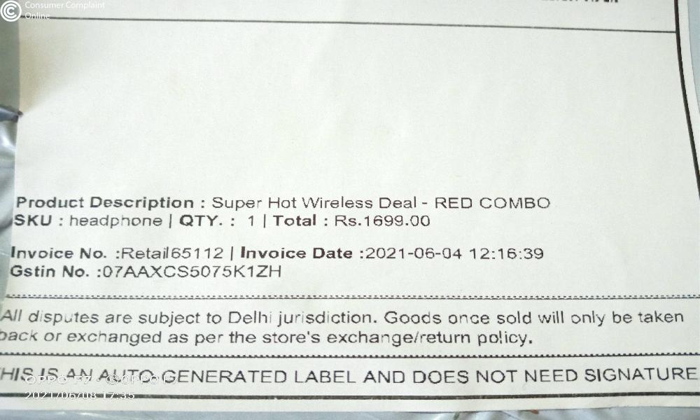 but i have received Realme Bluetooth headset that one piece that to very cheap quality