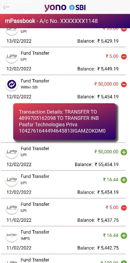 I B.Chandrasekhar i lost my money from my S B I net banking to Pasfar Technologies Private Limited dated 06.02.2022. I call to Canara bank customer care number to lost my wife mobile and gave a compliant to canara bank customer care number. He gave the my account details and transfer my S B I net banking account. So please back to money to my S B I account.