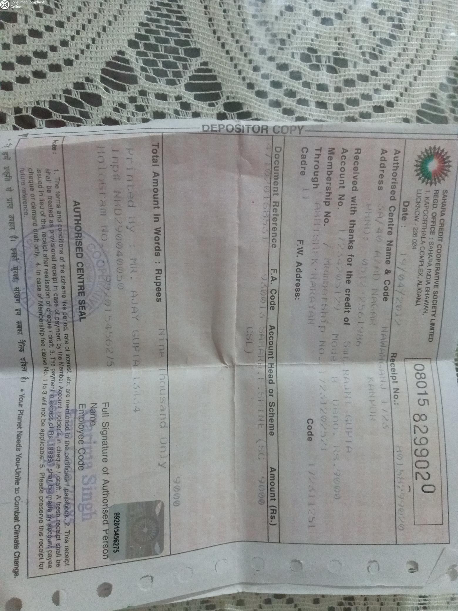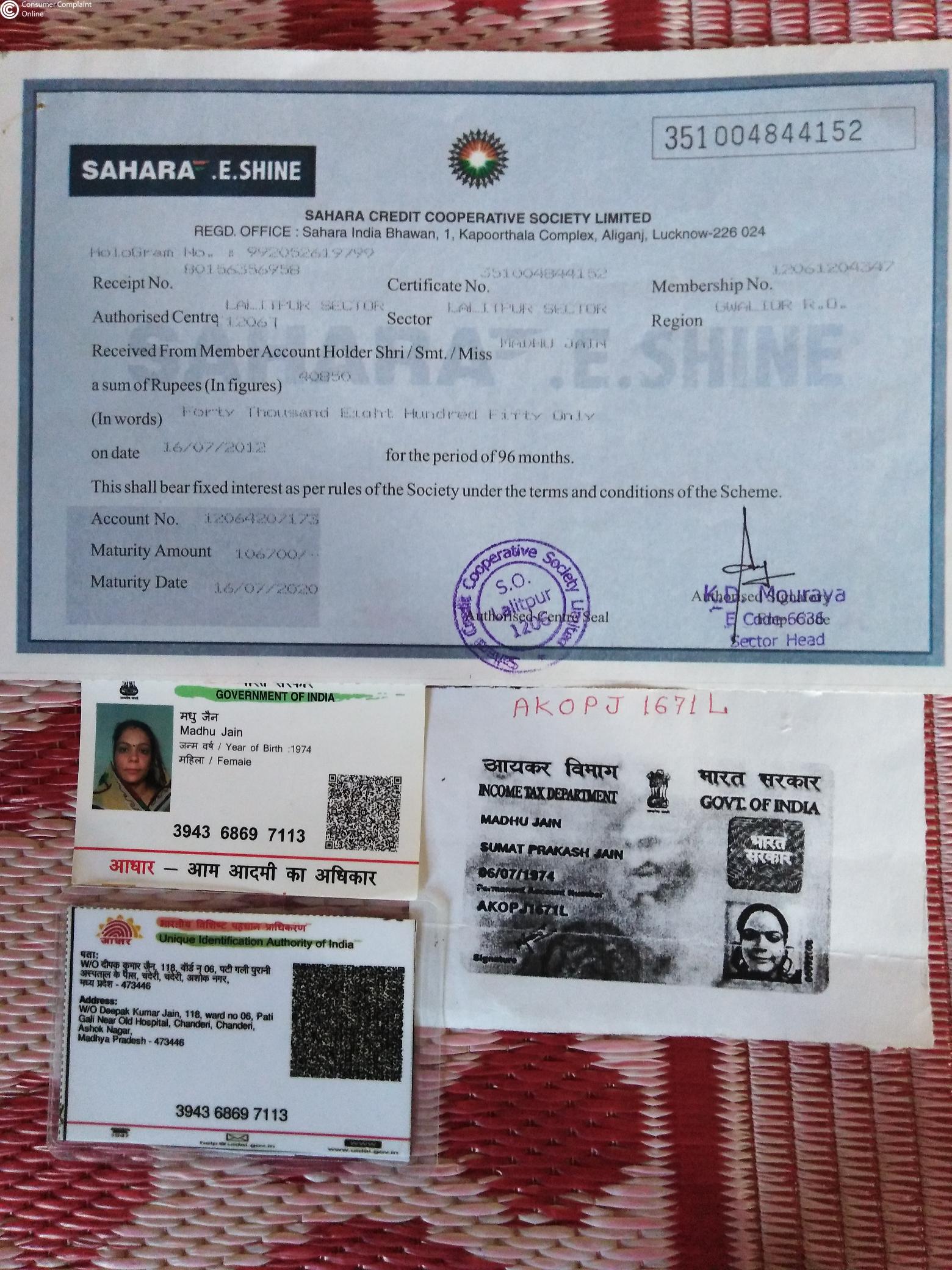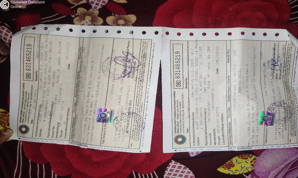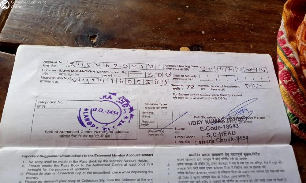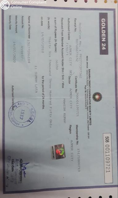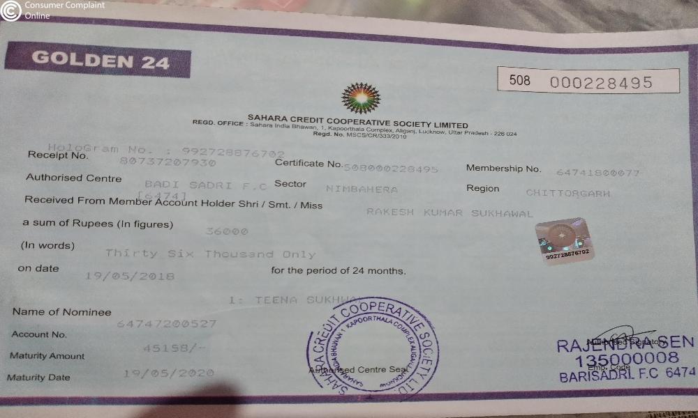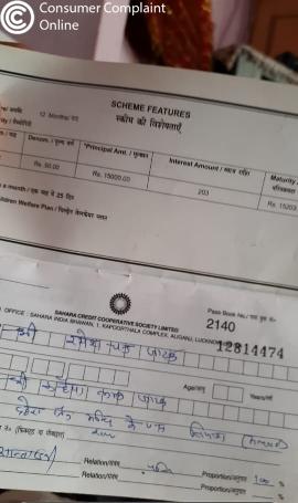 Sir/mem mere father ne Sahara credit cooperative society me paise 2016 me dale the jo Abhi tk nhi mile