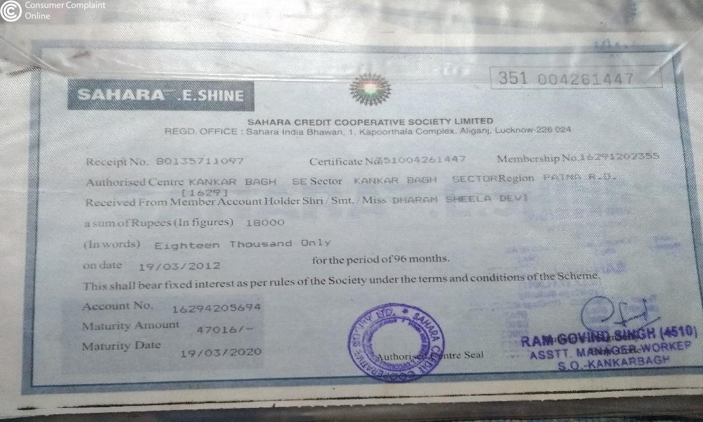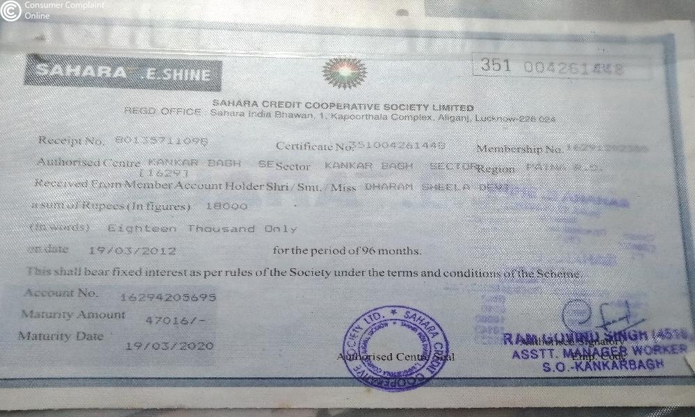 We have invested our money in Sahara credit cooperative society. Maturity is over in 2017 but we are not getting our money back.