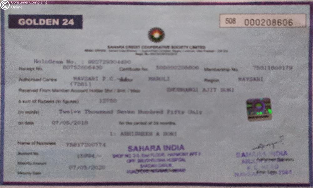 I have couple of fixed deposits under Sahara.E.Shine, Sahara Fixed Scheme & Sahara A Select Scheme which have been matured from january, but no amount has been paid from Sahara Credit Co-operative Society Limited. Required your help from filing my complaint and getting my money released at the...