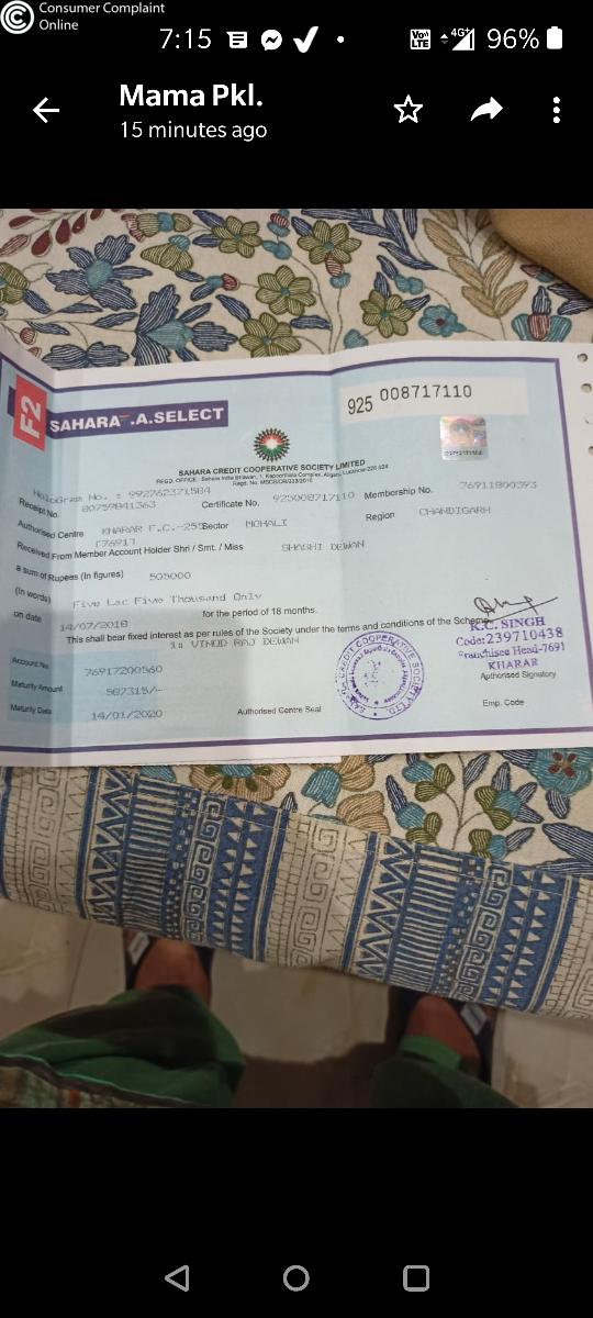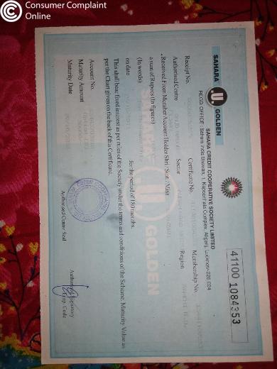 my sahara credit co operative society certificate925003462357 is matured but till date i didnt get matured amount so do needful and returm my matured value