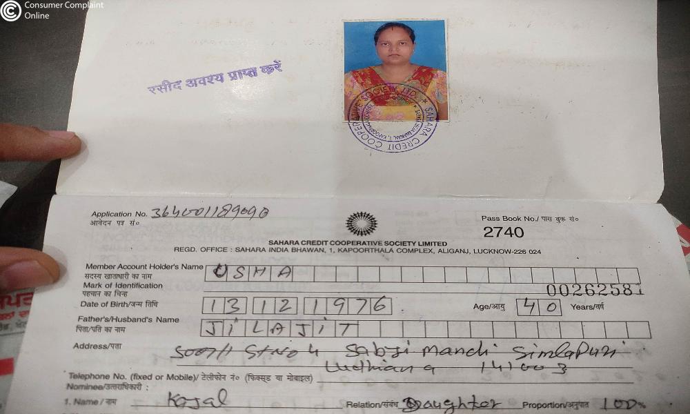 Myself Shalu Dass, D/O Mr. Jeevan Masih, W/O Mr Vishal Dass is having a account in sahara credit cooperative society.