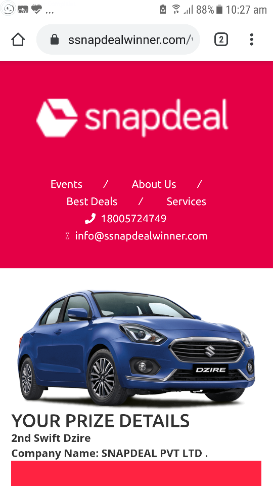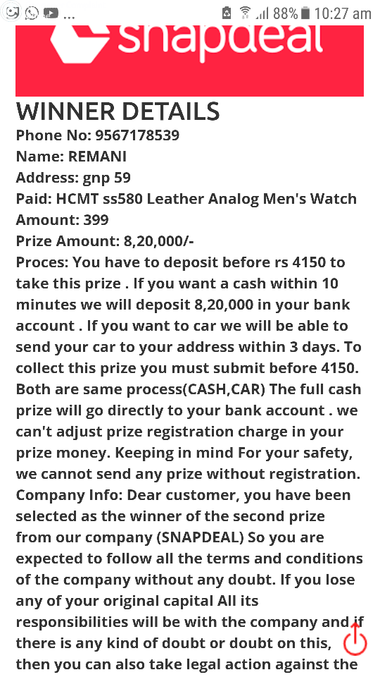 I baught microphone from snapdeal, I got massage and phone about lucky draw that I won second prize of near about 8lacks
