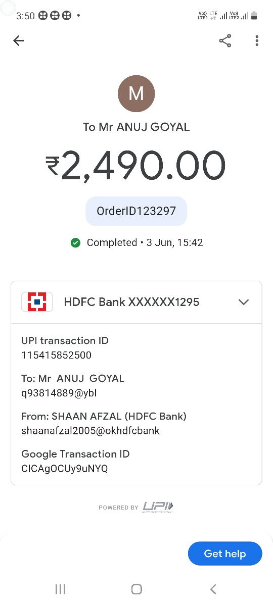 I HAVE ORDER AN MOBILE PHONE AND PAY BY UPI TO SCAN HIS QR CODE WORTH INR 1249. BUT NOT ANY ORDER DETAILS GIVEN AND NO ANY MESSEGES ABOUT TRAKING OR ABOUT COORIOIR. PLS ASSIST HERE.