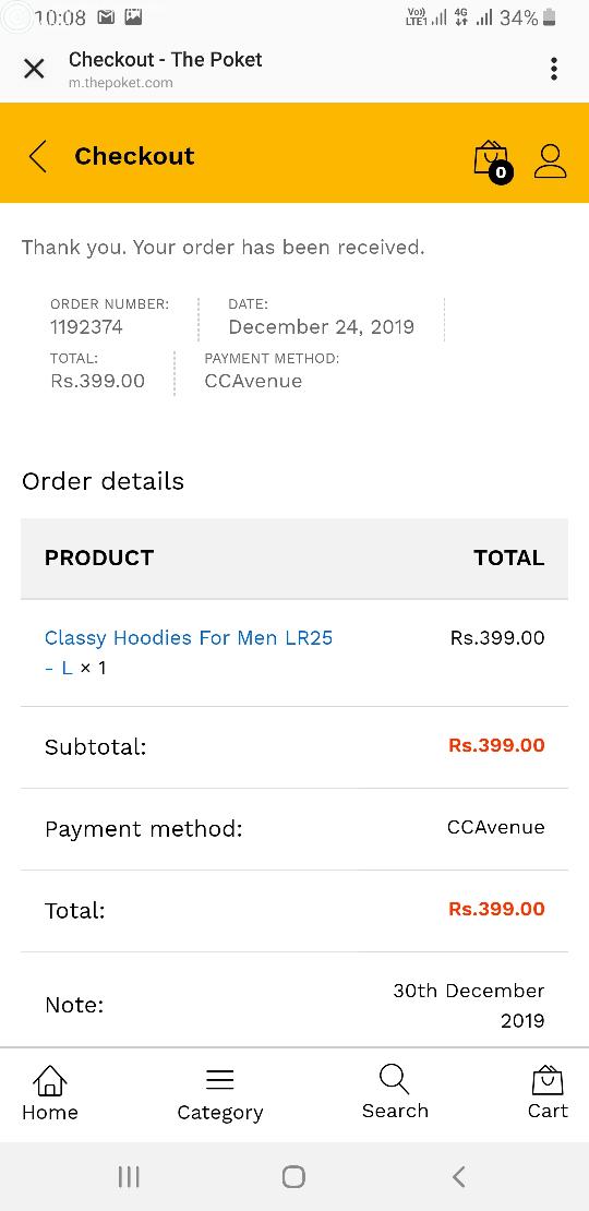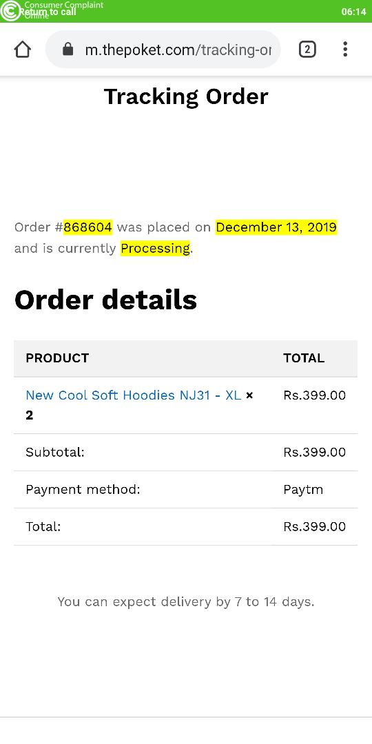 Sir/mam I ordered two hoodies from the poket website on 23rd january 2020.But it still not received.please do something and