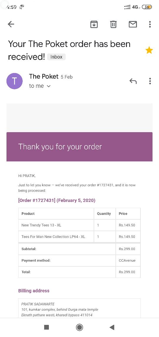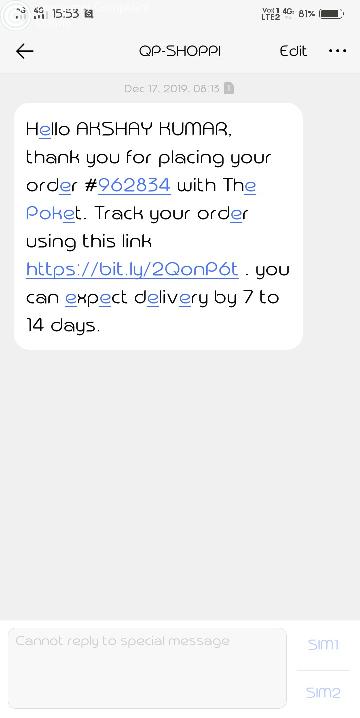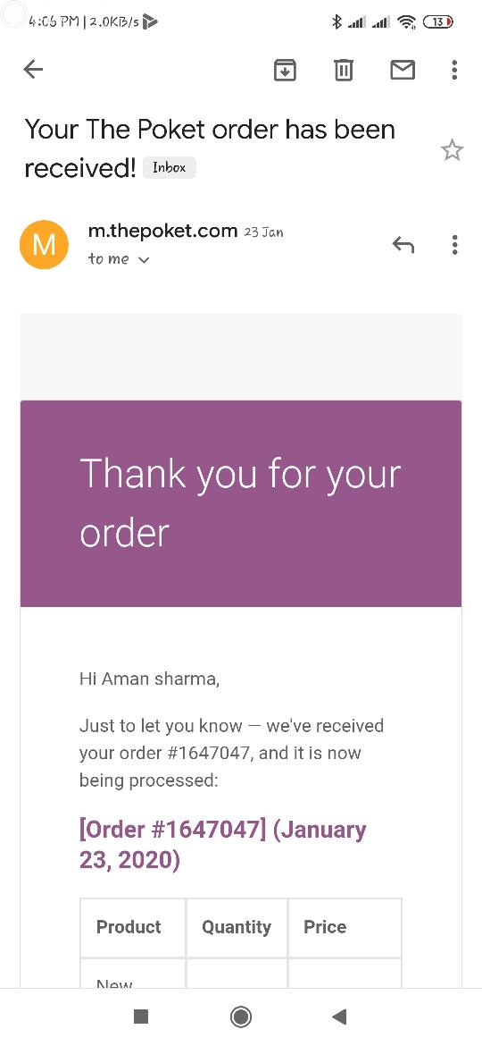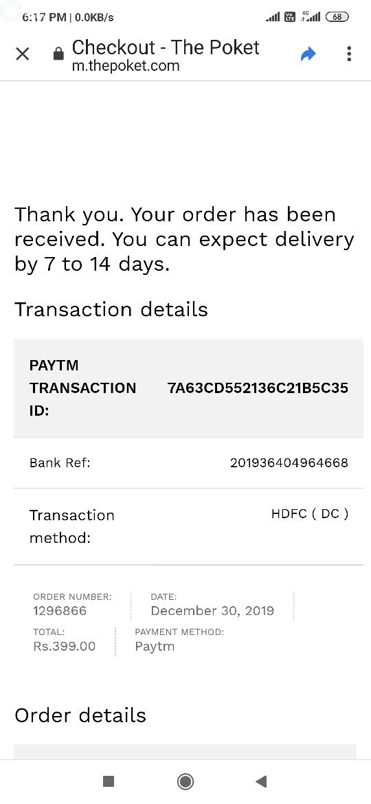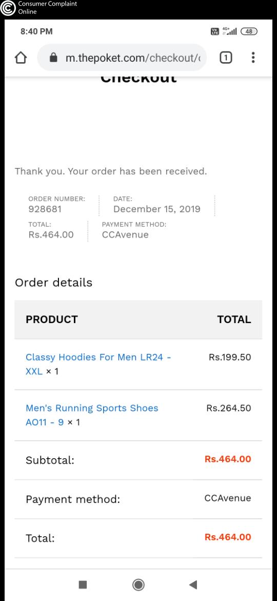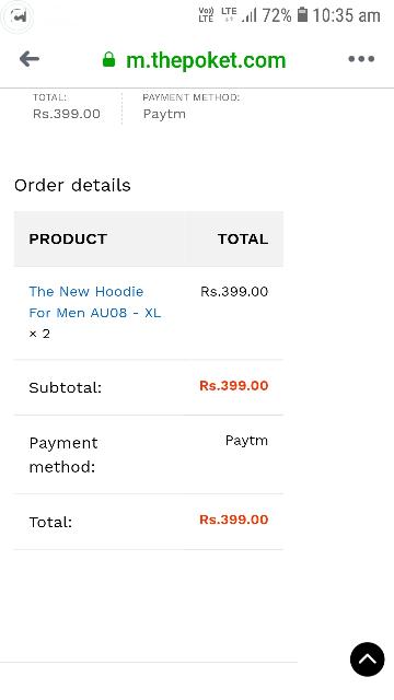 Sr maine Oct 2019 and first week Nov 2019 me ek Winter coat type t shirt ki deman dali thi us demand ka paisa to kat liya lekin vo item abi tk delivered ni huaa h paisa kariben 399 ya 350 k aas pass ka tha ya to vo aapki ki coy me koi kam krta h us customer ne rakh liya ya aapki coy ne delivered ni kiya ye dhokha dhari nhi chlegi m poket coy ka nam Facebook Insta you tube sb pr dal kr video viral kr dunga prahlad nam se vo item tha address 224 Abod banar Jodhpur Rajasthan code 342027 thank you