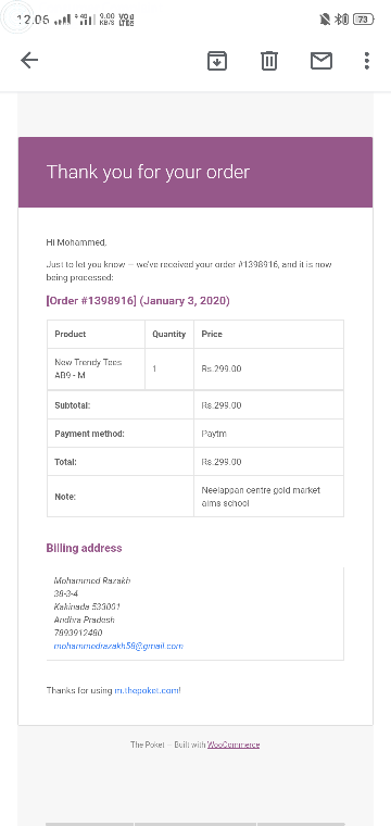 January 10 I ordered a tee-shirt in this website,the order will placed and I pay the money using Paytm money transfer.but not response to this company.
