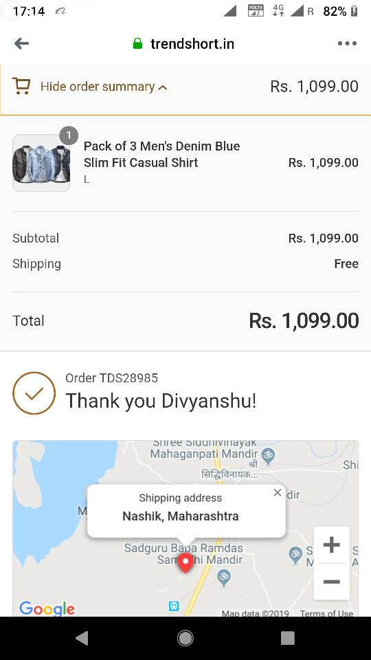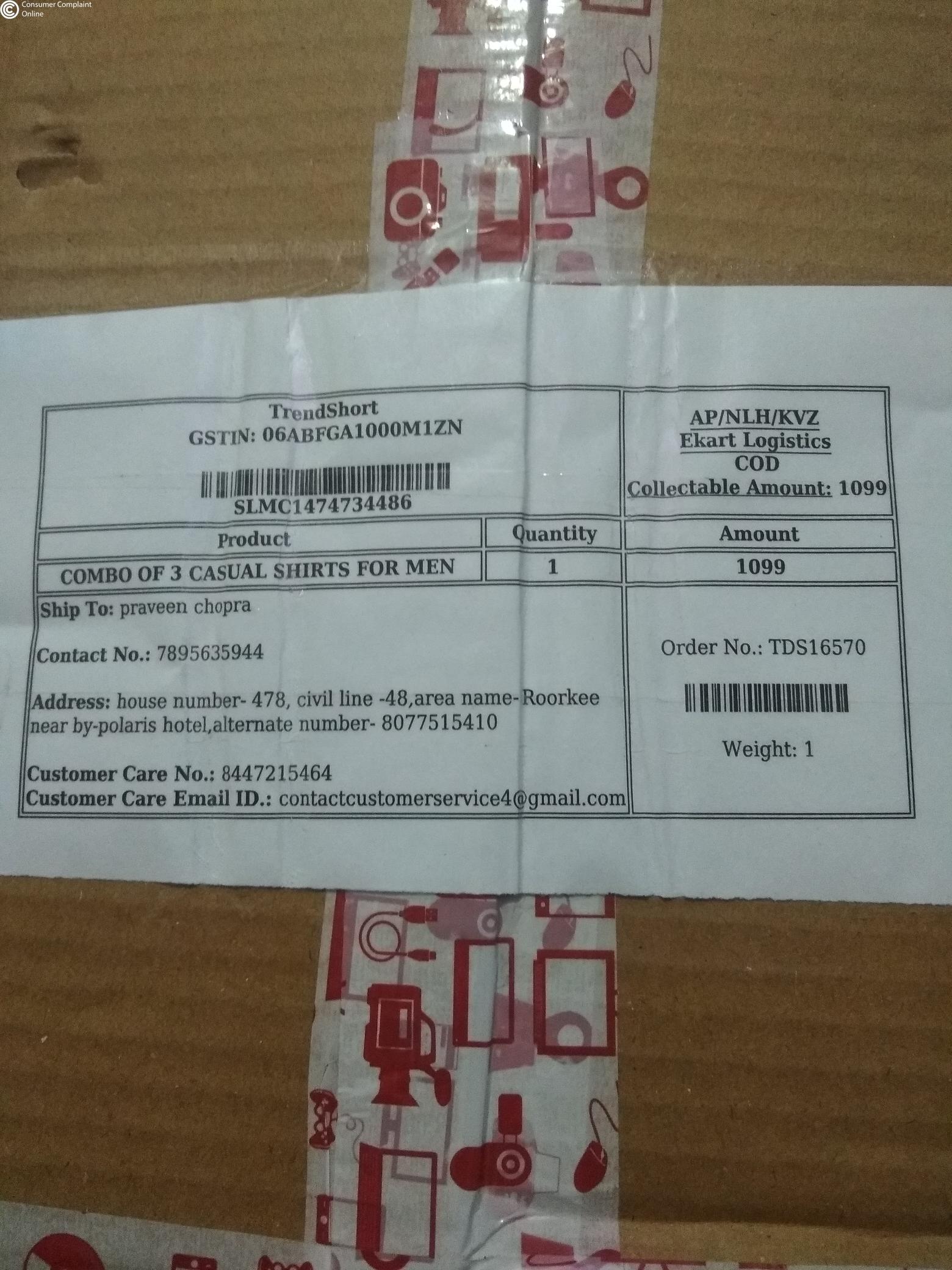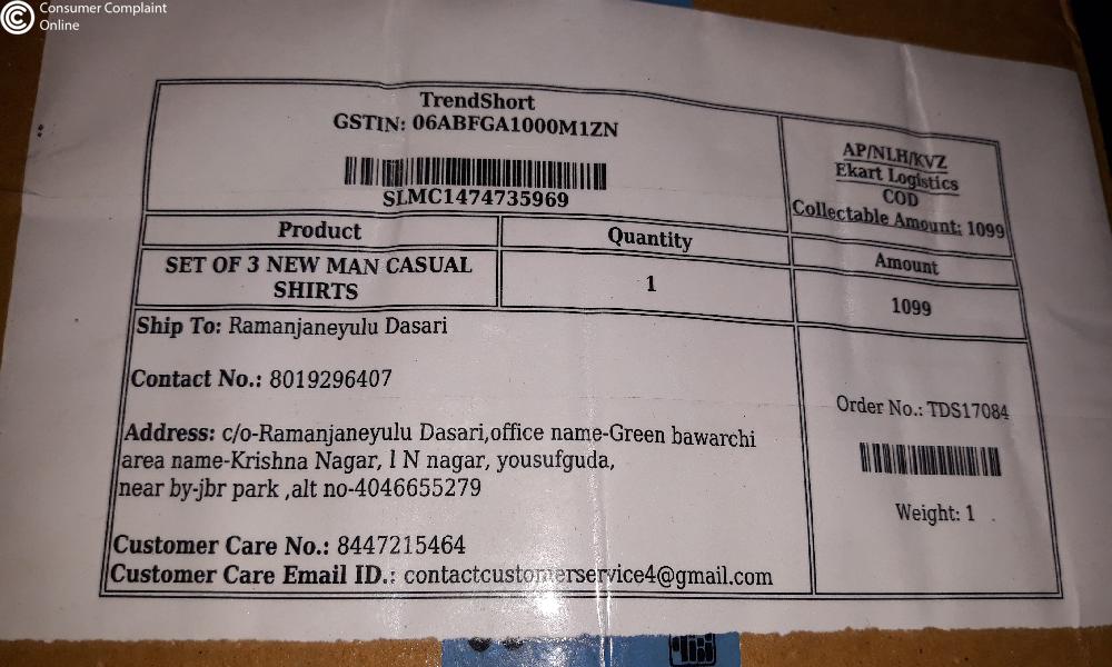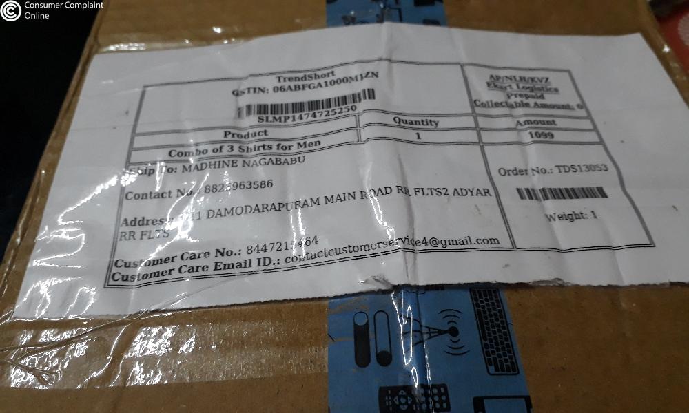 I ordered one combo of three Solid Men’s Formal Shirt from the online website “ Trendshort.in” worth Rs: 1099 /-.After delivery I checked and found the wrong item is delivered. And also the item is very old and poor quality item.