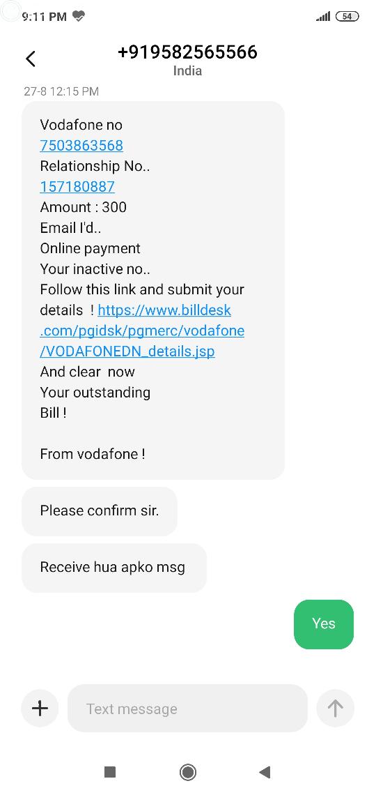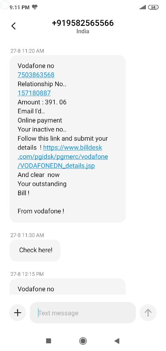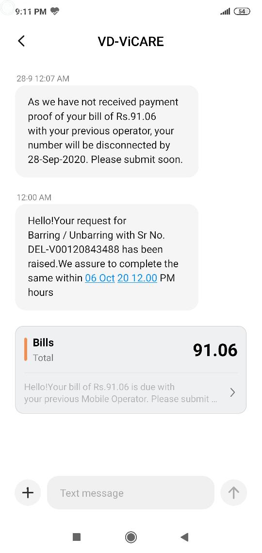 Same time I paid . After one month again given msg pay bill 91 but Vodafone compay wave of me 91