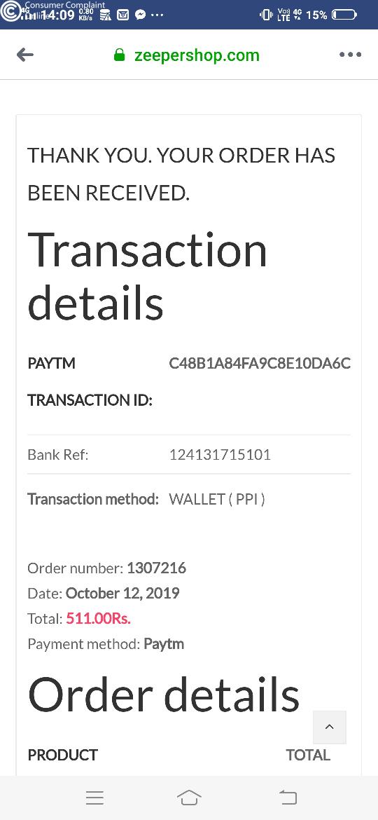 I had placed an order for a shoe of rupees 511 on zeeper shop..so I tried it on COD..tat was not available..since I had to place the order ..I paid the money online via paytm...on tat day I just received the text tat my order was successful. And till date there is no response... please help me refund my amount back to me...